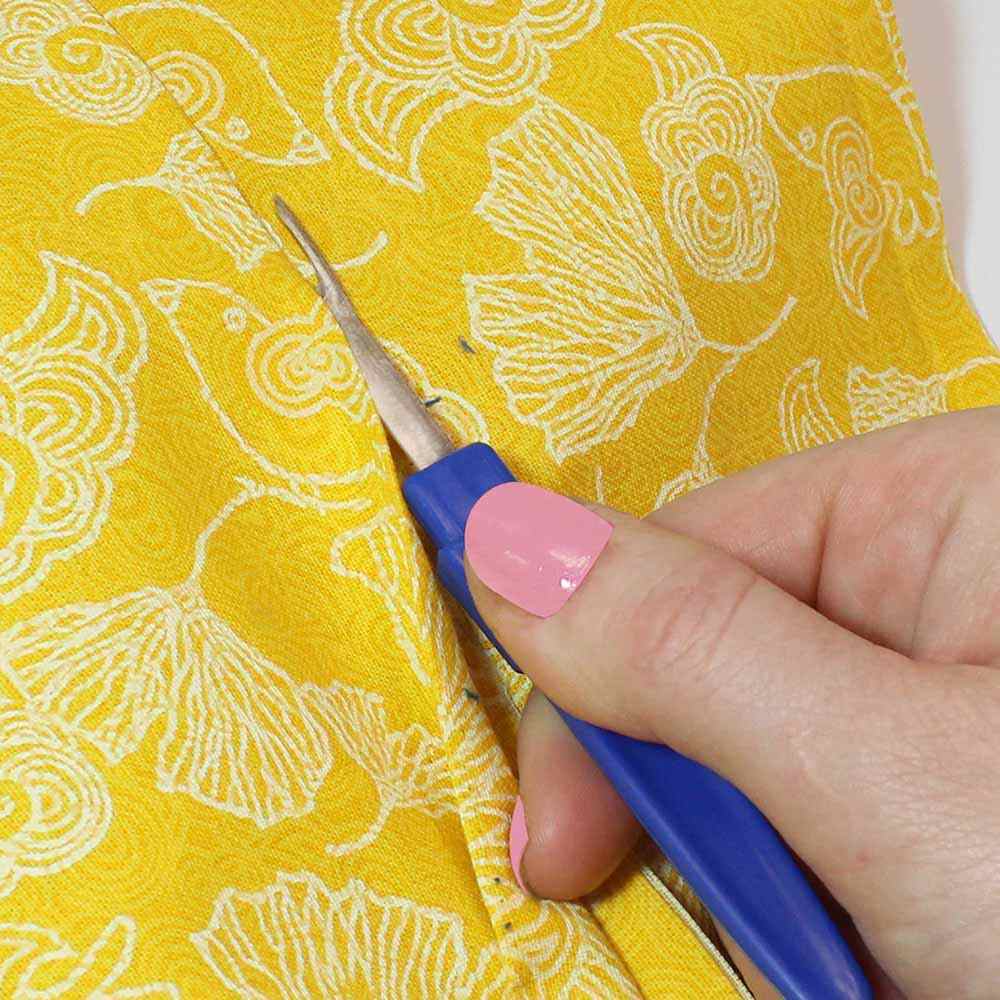 Sewing accessories, buttons, snaps, and collar stays. Also the small tools used in sewing, such as thread, pins, marking pens, and seam rippers.